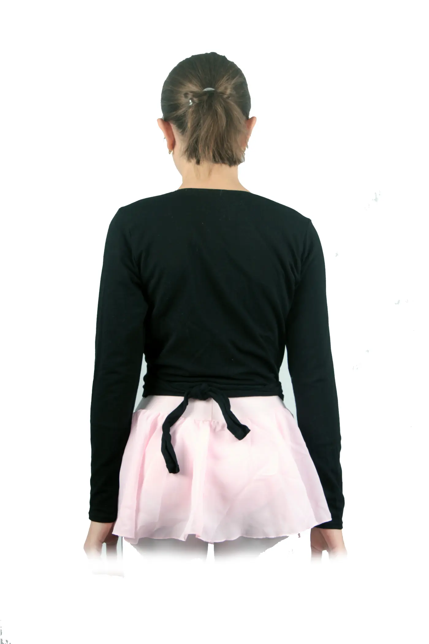 A lányoknak készült melegítő felső a kis táncosok ruhatárának elengedhetetlen része. Ez a klasszikus vágás cross overrel nemcsak szépen illeszkedik a testhez, hanem lehetőséget kínál a szükséges szélesség egyéni beállítására is. Nem csoda, hogy a kis táncosok, balerinák nem csak a bemutatkozó gyakorlatok alkalmával kedvelik, hanem a hűvösebb tánctermekben is. A 90% pamut és 10% elasztán minőségi anyaga kellemes a testnek, meleg, ugyanakkor kellően rugalmas ahhoz, hogy ne korlátozza a mozgást. Hideg vízben, enyhe mosószerrel mossuk klór nélkül és hagyjuk szabadon megszáradni.