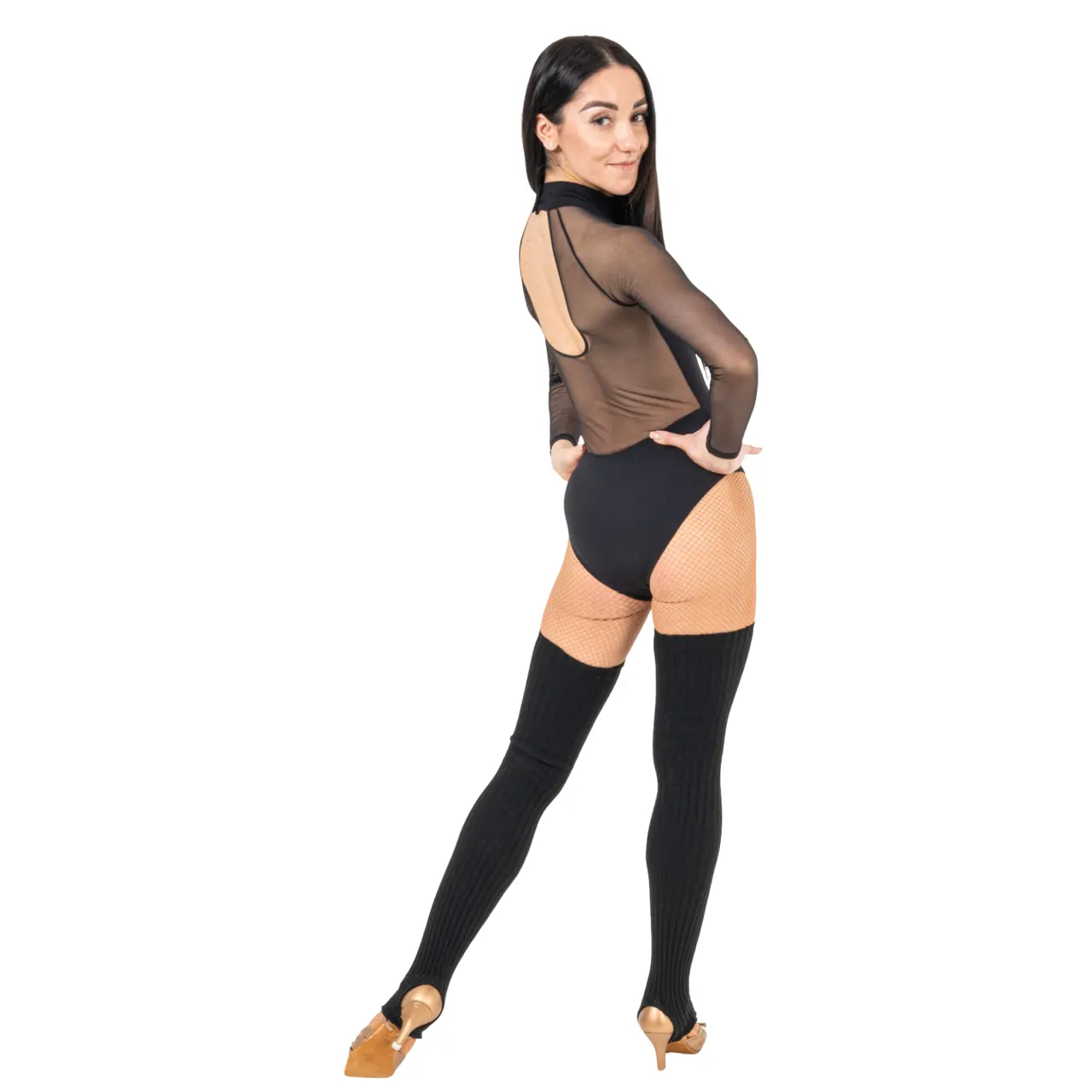 Elegáns és modern dressz, amely ötvözi a stílust a kényelemmel. Az álló gallér, a mély V alakú hálós kivágás és a hosszú hálós ujjak merész, mégis kifinomult megjelenést kölcsönöznek. A nagy kivágással ellátott hálós hát részlete könnyed és egyedi hatást ad.