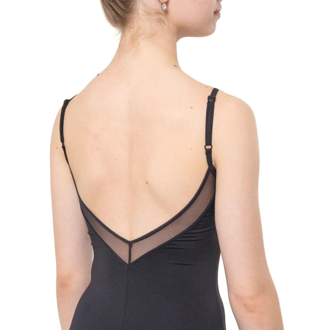 A finom trikóból készült, vékony pánttal rendelkező balett-mez poliészter és spandex puha keverékéből készült, hálóval kombinálva tiszta és sima vonalakat ad a sziluettnek.