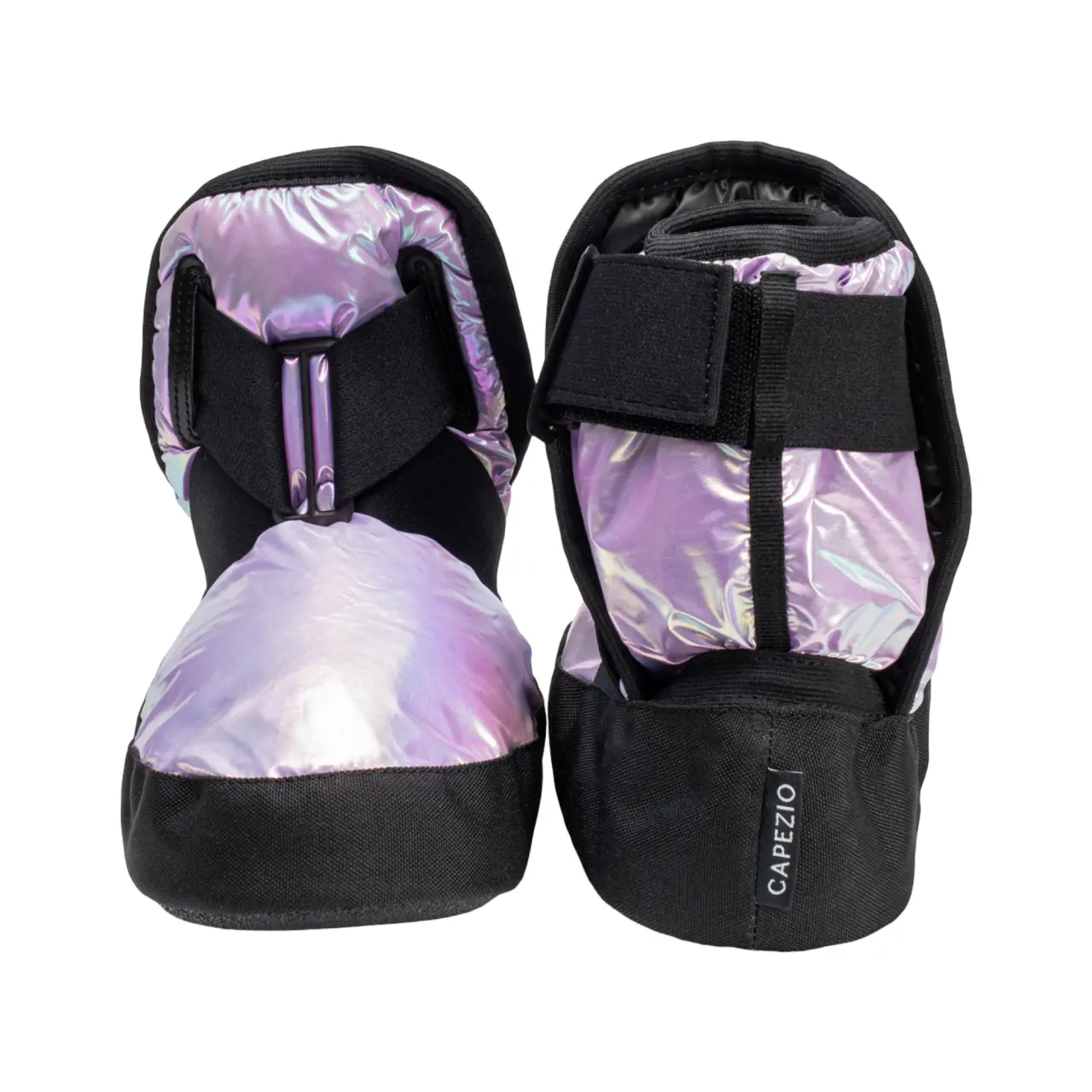 Biztosíts melegséget, kényelmet és stílust a lábaidnak a táncórák előtt és után a Capezio Glam Warmup Bootie segítségével. Ezeket a stúdióhasználatra tervezett, bélelt táncos bootie-kat puha balettcipő és spicc-cipő fölött is lehet viselni, hogy az izmokat és ízületeket optimális hőmérsékleten tartsák, és felkészítsék a tested a teljesítményre.