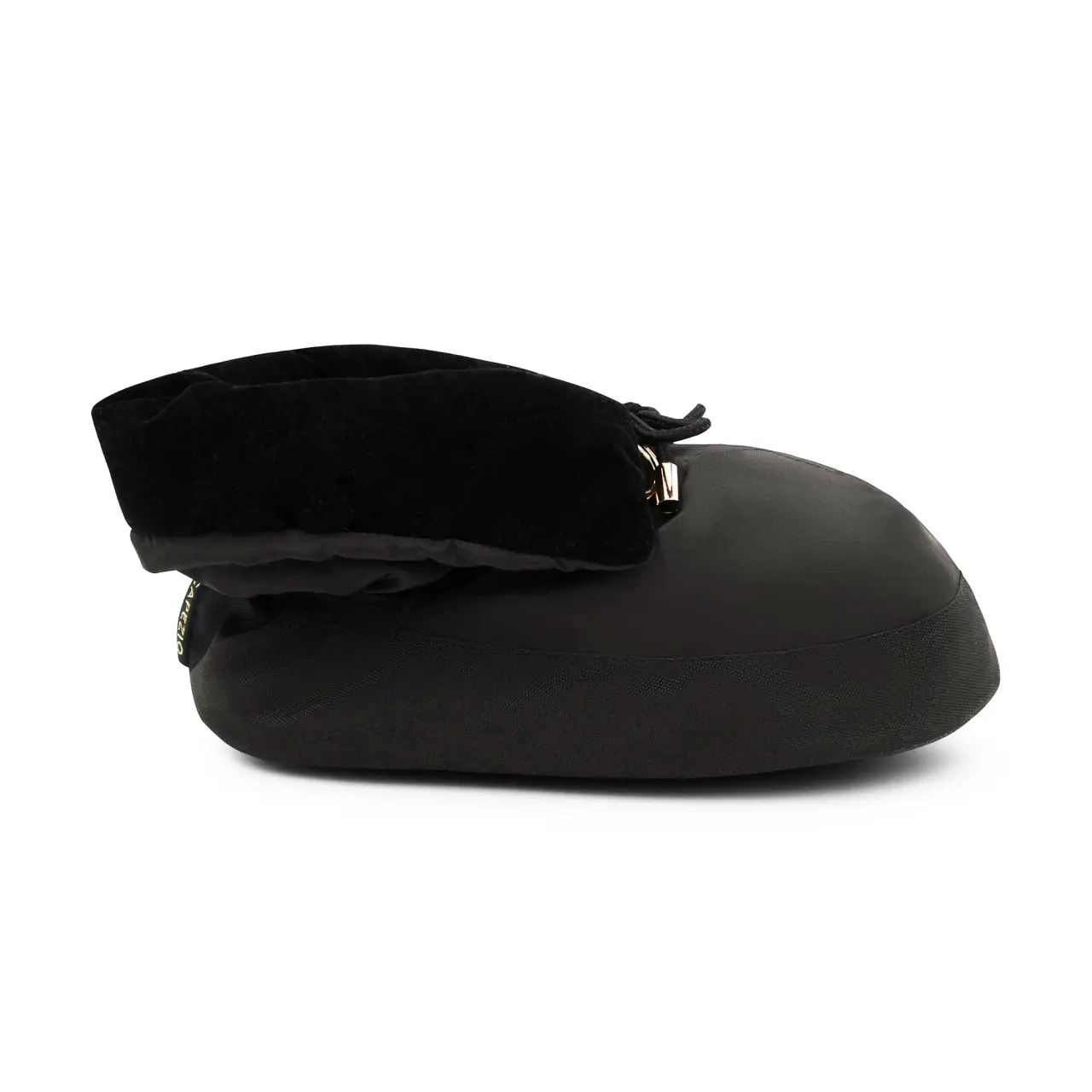 Adjon stílust és kényelmet táncos öltözékéhez az elegáns Mini Warmup Bootie viselésével, amely ideális a lábak bemelegítésére edzések és próbák között. Ez a bélelt tánccipő a funkcionalitást a luxus érzetével ötvözi: finom bársonyszegéllyel a felső részen és elegáns fekete színnel.