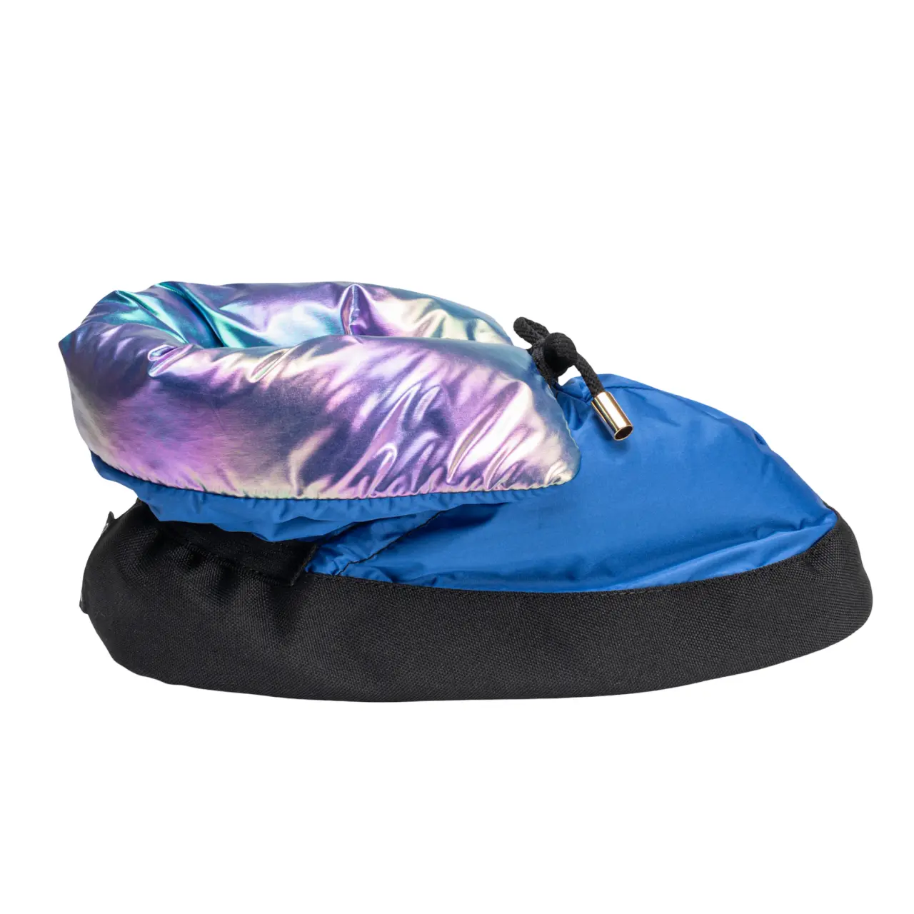 Az elegáns bársonyszegély, a finom aranyszínű metál részletek és a fényes taft poliészter luxus megjelenést kölcsönöznek. Az anyag ellenáll a nedvességnek és a gyűrődésnek, miközben szépen megtartja formáját. A csúszásmentes, puhán párnázott talp stabil tapadást és egyenletes súlyelosztást biztosít, így a cipő ideális a stúdióban való mozgáshoz is.
