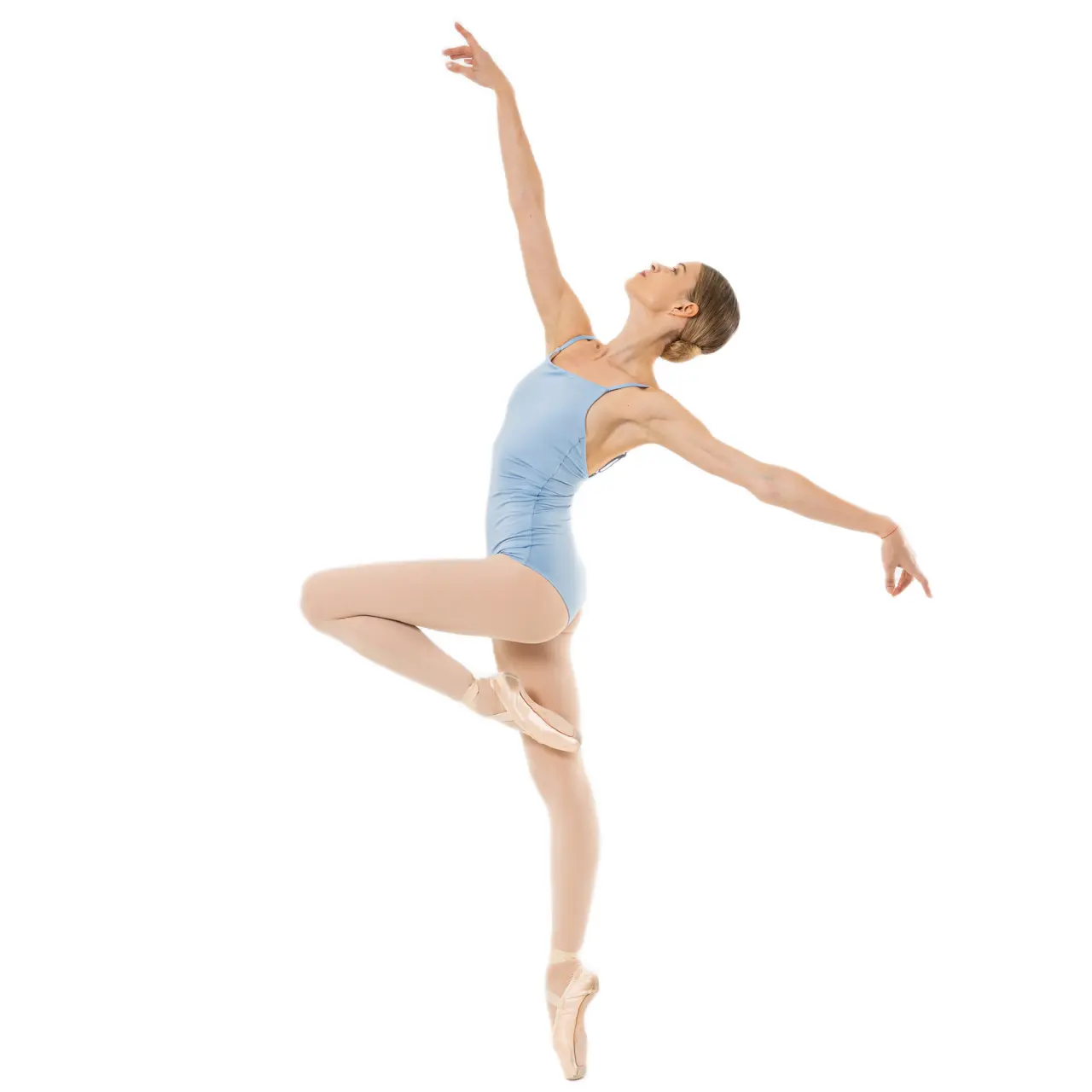 A női táncdressz Reminiscence Wistful Camisole Leotard finom redővel díszített négyzetes elülső nyakkivágással rendelkezik, amely játékos és elegáns megjelenést kölcsönöz a felsőnek. Az alacsony, V-alakú hátsó kivágás és a hátul lévő állítható pántok pontos illeszkedést és kényelmes viseletet biztosítanak.