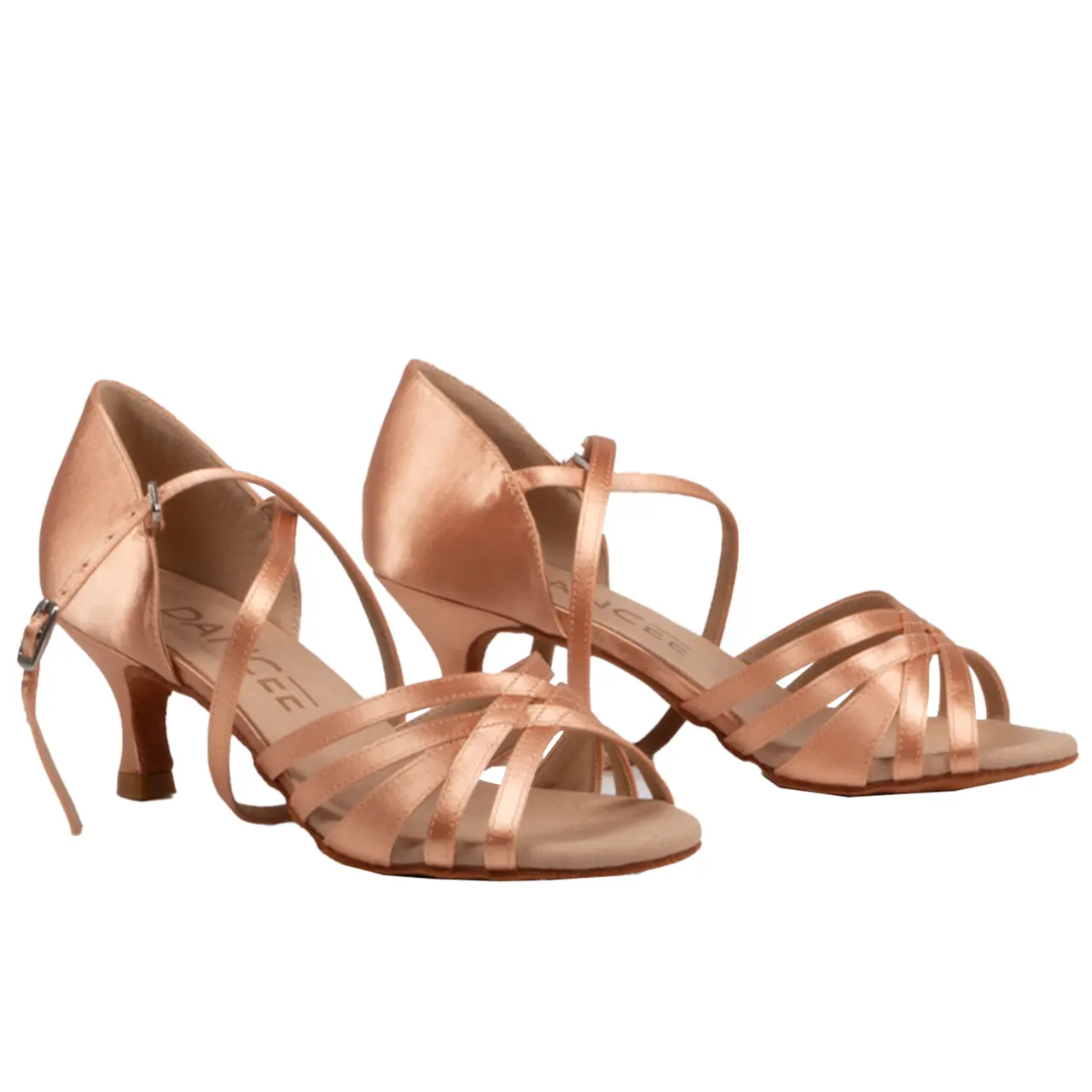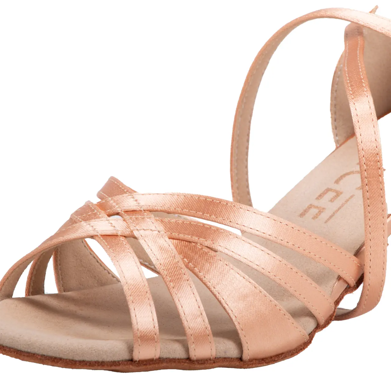 A vékony pántos tánccipők klasszikus, elegáns szabása soha nem megy ki a divatból. A latin cipő könnyű, rugalmas talpa és párnázott talpbetétje pedig kényelmessé teszi. A talp szálcsiszolt bőrből, a felsőrész pedig szaténból készült.