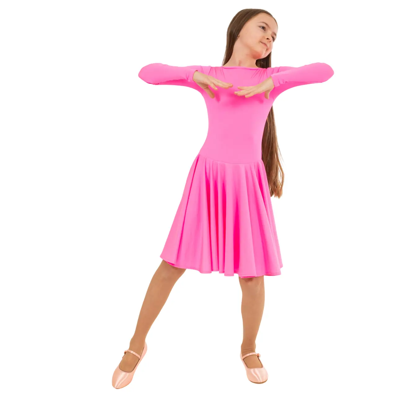 Egyszerű szabású, hosszú ujjú lányruha kezdőknek, első versenyekre ideális. Elöl és hátul kerek nyakkivágással. Hátul szinte láthatatlan cipzárral záródik. A bugyi szétkapcsolható. Anyaga 100 % poliészter. Mossa hideg vízben kímélő mosószerrel, és hagyja szabadon megszáradni.