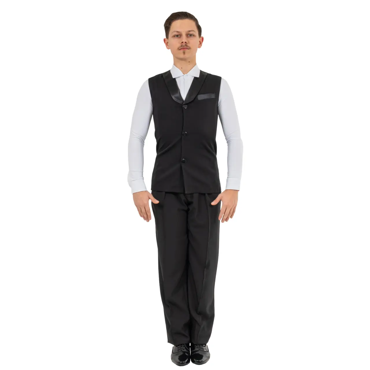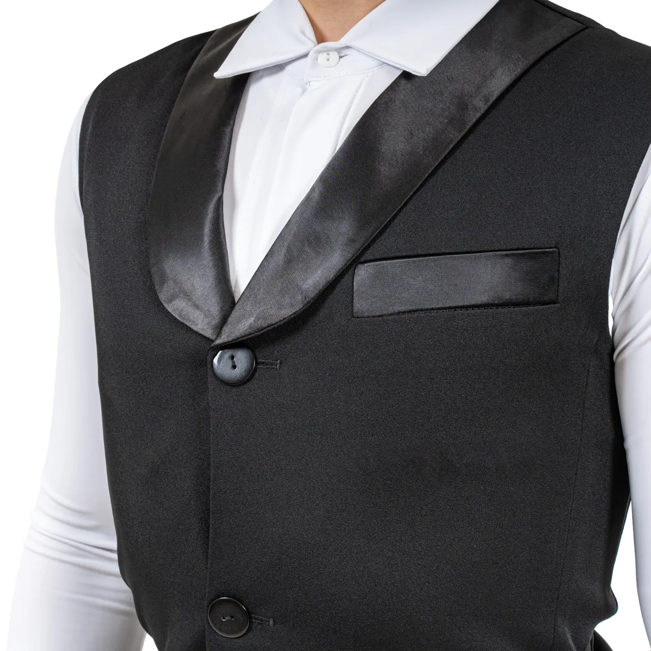 Eliot standard férfi mellény, finom szaténnal szegélyezett hajtókáival elegáns és luxus megjelenést kölcsönöz a táncosnak.