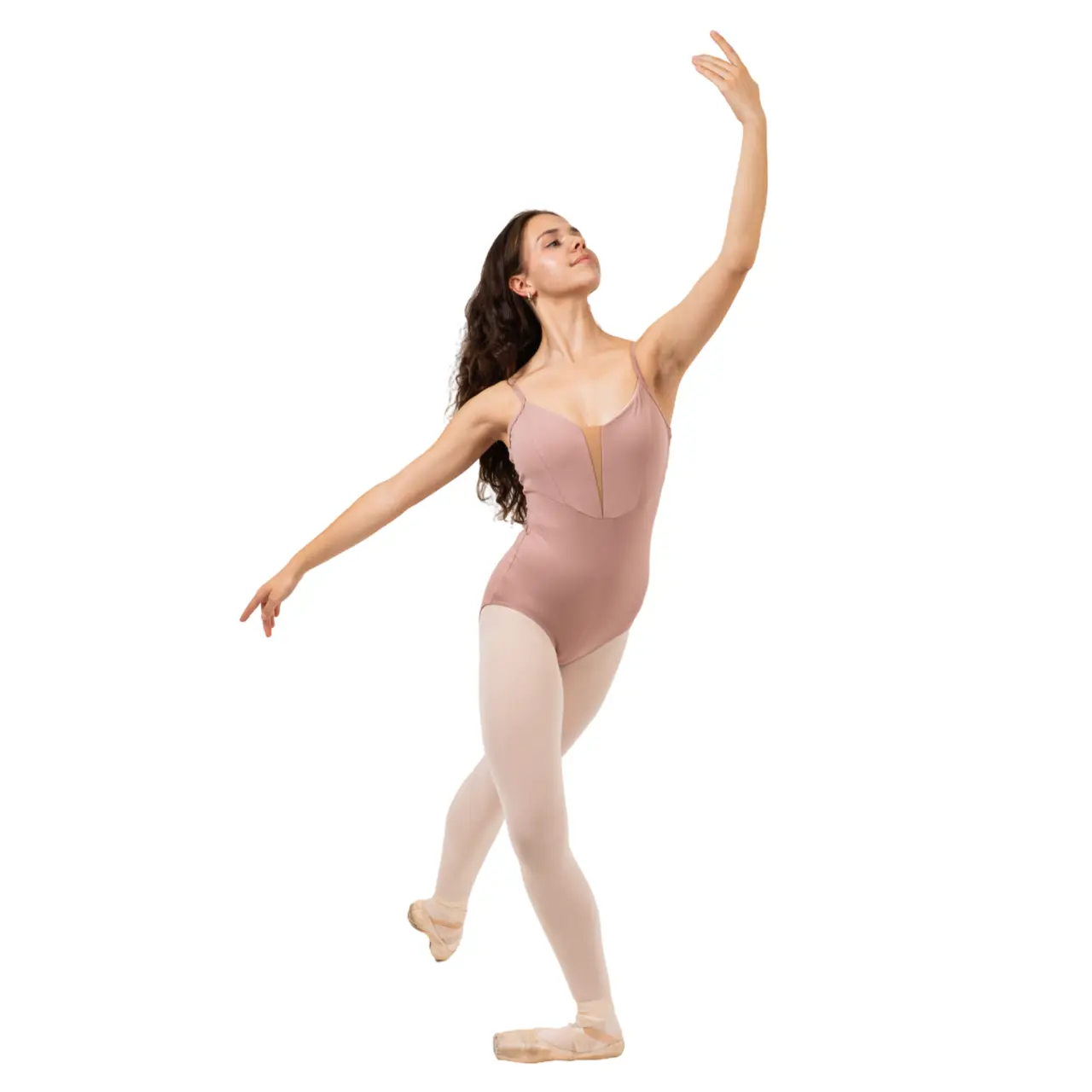 Elegáns és időtlen trikó, amelyet kifejezetten tánchoz és baletthez terveztek. A finom, vékony pántok és a klasszikus szabás kiemelik a nőies sziluettet, míg az elülső V-kivágás bőrszínű betéttel diszkrét hatást kelt és optikailag meghosszabbítja a felsőtest vonalát. A hátoldalon ívelt kivágás teszi a modellt könnyeddé és légies megjelenésűvé.