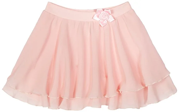 Kétrétegű balettszoknya derékban gumiszalaggal. Kevésbé átlátszó, anyaga lengébb a klasszikus poliészter változatokhoz képest. A derekán virágdísz.